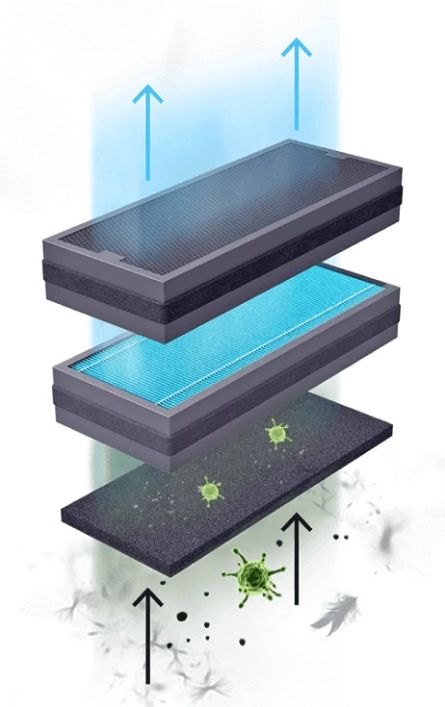 Задерживает мелкую пыль, аллергены, бактерии и вирусы. Инактивация микроорганизмов на антибактериальном слое.